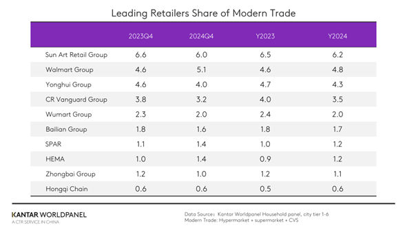 Modern trade channels (including hypermarkets, supermarkets and convenience stores) saw a slight 0.4% decline in the fourth quarter. Large formats such as hypermarkets and supermarkets remained the main drivers of this decline.