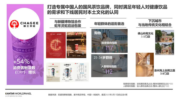 2025年春节,霸王茶姬延续其“东方茶饮”定位,与新疆博物馆联名推出限定包装,融入非遗文化元素。捕捉年轻群体在家外逛街购物的重要场景。