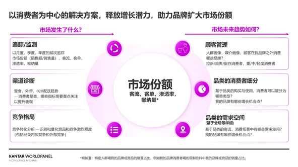 提升渗透率是品牌获得增长的首要法则。不断提升渗透率和更精准的场景营销是推动品牌消费者触及数(CRP)增长的重要因素。品牌要想捕捉潜在消费者实现增长,需要有针对性的策略和前瞻性的布局,包括对目标市场的深入了解、竞争对手的识别和量化、消费群体的进一步细分、以及准确的场景营销策略。
