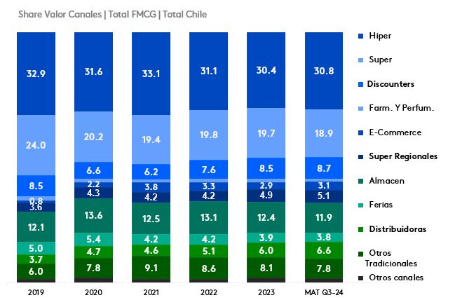 Las distribuidoras han logrado ampliar su participación en el mix de canales, mientras que los supermercados regionales han experimentado una desaceleración en su crecimiento.