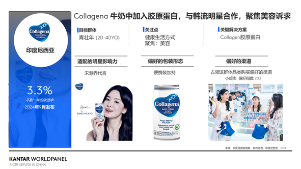 印尼的一个例子是通过品牌名称、代言人、包装以及销售渠道,非常清晰地定位了目标群体。这个产品在青壮年群体中取得了很好的突破,展示了如何通过细节和全面的策略来吸引目标消费者。