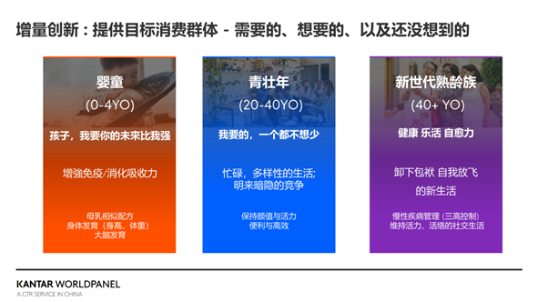 在产品研发过程中,最重要的是准确把握目标群体内心真正渴望的东西——包括他们需要的、想要的,甚至还未想到的需求。这三大群体各自的特点和诉求,为乳制品创新提供了明确的方向和巨大的机遇。