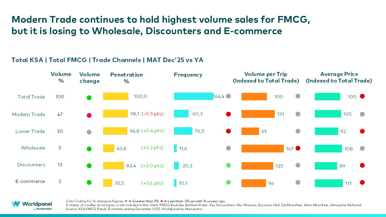 Meanwhile, modern trade remains important but is under pressure as shoppers optimise spend and shift trips elsewhere.